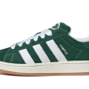 LàAdidas Campus 00s Dark Green Semi Lucido Blue presenta una base inpelle verde, accompagnato daTre spesse strisce blu Sul pannello laterale, le caratteristiche del marchio e concesse ai lacci. Vicino al campus degli anni ’80, questo modello di ispirazione skate rivela anche un ingiallito, per accentuare l’effetto vintage, accompagnato da a Sole da gomma.